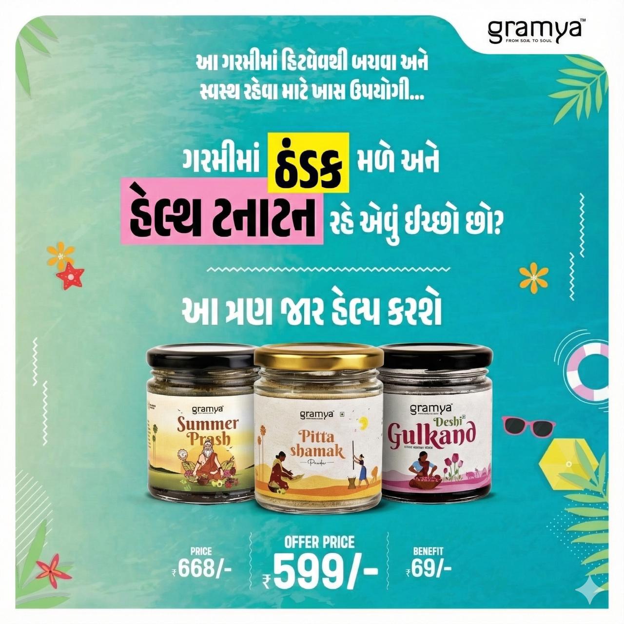 Introducing Gramya's Summer Survival Kit! Stay cool and healthy with our special combo of three essential products to beat the heat.